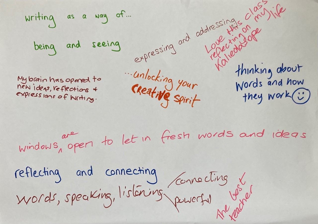 Each week introduces a new storytelling or writing practice, exploring forms including haiku, dialoguing, creative list-making, sensory writing, letter-writing, micro-essays, and more unconventional ‘containers’ for expression.