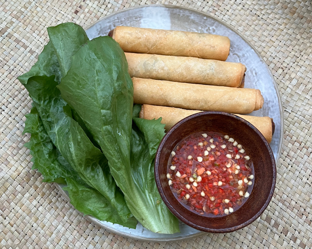 Filipino spring rolls filled with seasoned beef and mixed vegetables, rolled and fried to a crisp golden finish. - Pancit bam-e